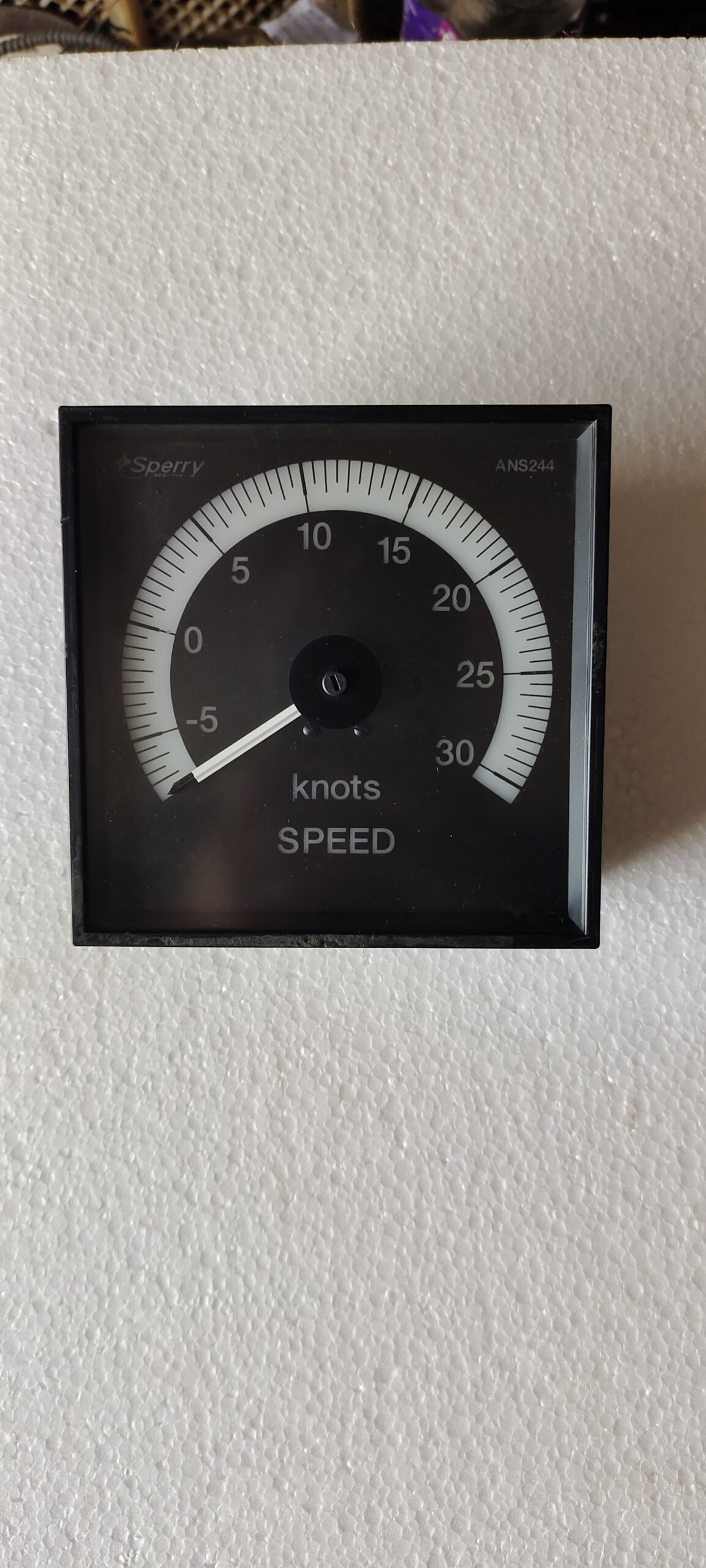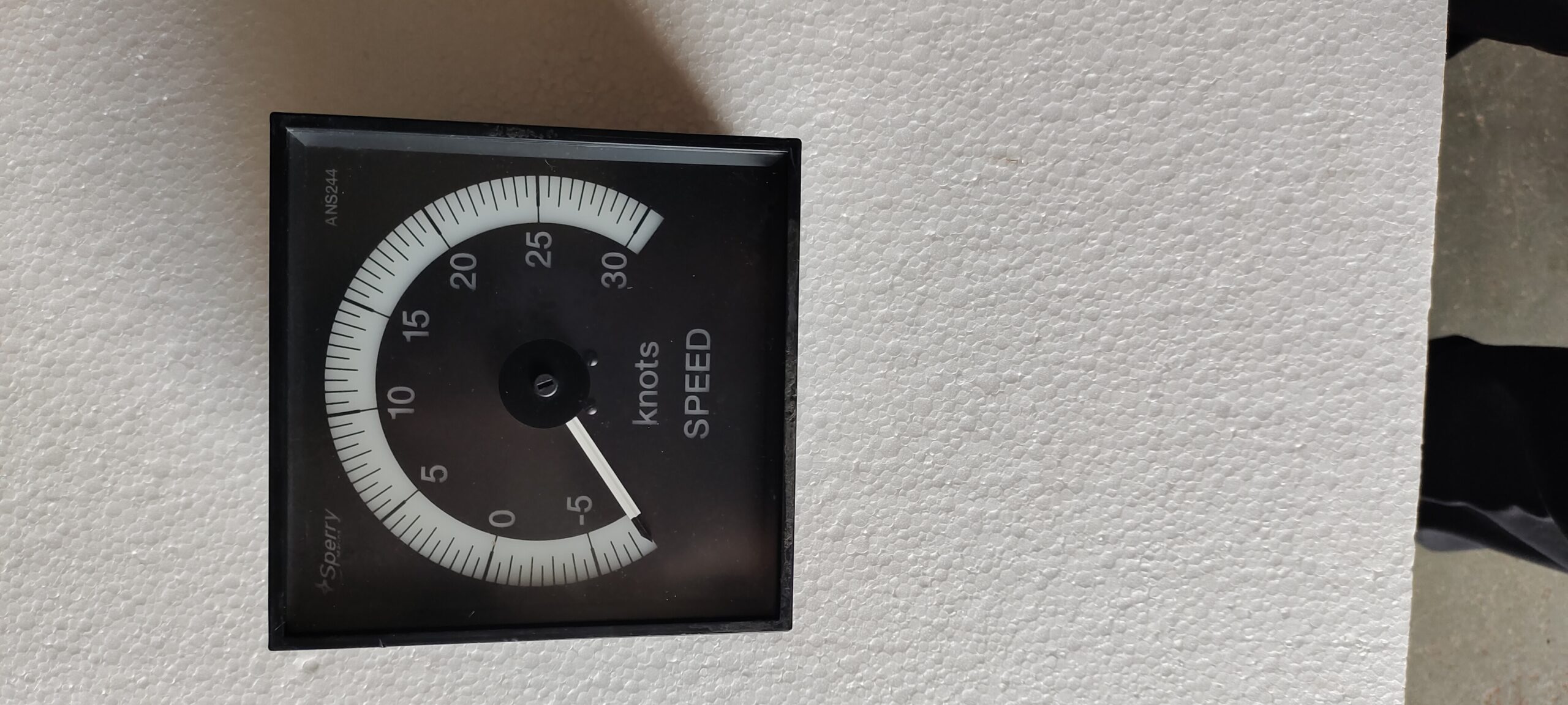 The Sperry Marine ANS244 is an analog instrument for displaying vessel speed in knots and distance traveled, specifically designed for safe, reliable operation on a ship’s bridge, often used with gyrocompass systems, showing speeds from -5 to 30 knots and likely incorporating a distance log function, crucial for navigation safety and monitoring.